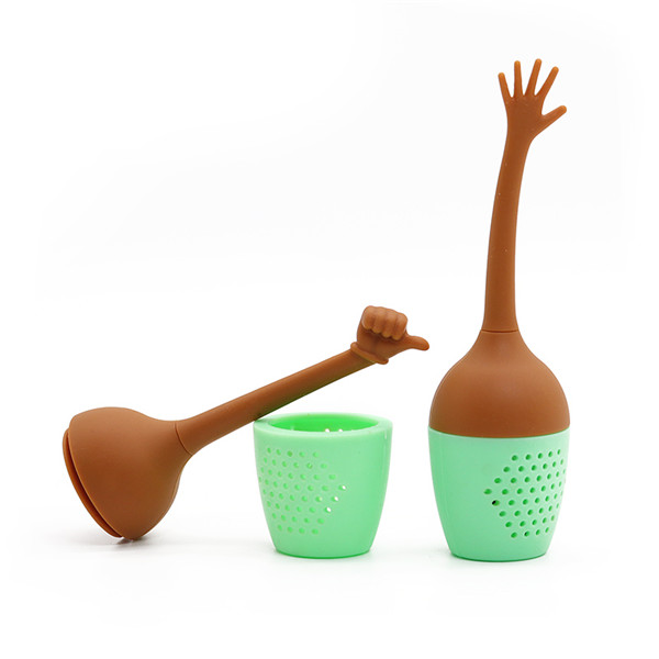創(chuàng)意手臂結(jié)構(gòu),可輕易拿去,用于高低溫浸泡茶,可反復(fù)使用,長(zhǎng)期高溫接觸不變形,清洗便捷,純硅膠泡茶器,創(chuàng)意硅膠生活用品,顏色亮麗,對(duì)沸水不產(chǎn)生任何雜質(zhì)以及產(chǎn)品上的材料殘留雜物等,可使用于水杯,水壺以及大型鍋碗等等
